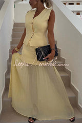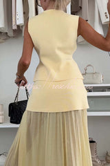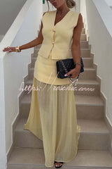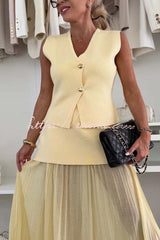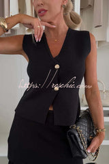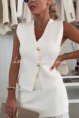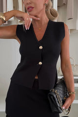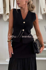 Stylish and Elegant Knit Gold Buttons V-neck Loose Vest