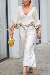 - Sleeve Type: Knotted Cuff Half Sleeve