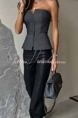 Street Mixed British Style Off Shoulder Front Zipper Top