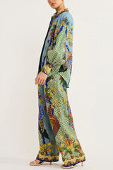 Sun Seeking Unique Heaven Bird Print Balloon Sleeve Button Loose Shirt