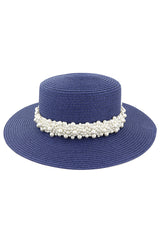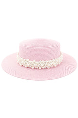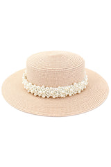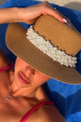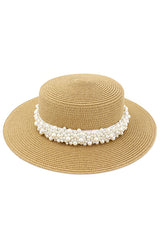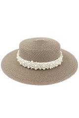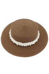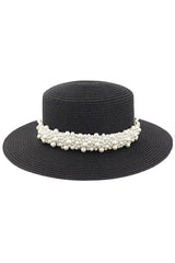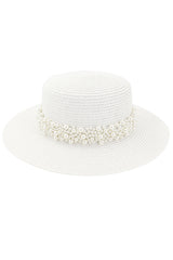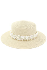 One size fits all. Pearl beaded embellished, braided beach sun hat.