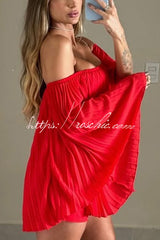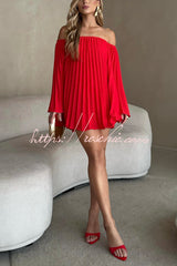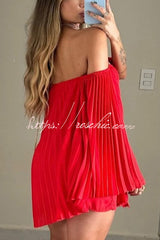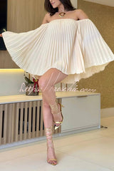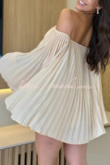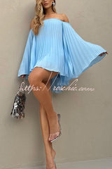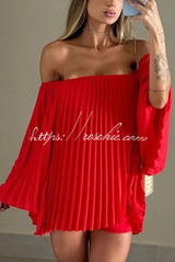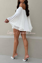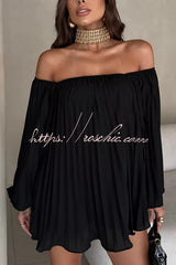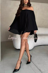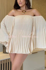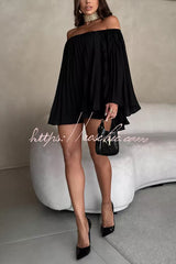 Solid Off-the-shoulder Pleated Loose Top and Elastic Waist Shorts Set