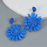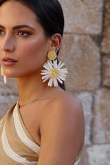 A must-have for our who love drop-style earrings. Our Earrings in feature beautiful straw detailing and unique flower shape. These are lightweight and fun, making them an easy addition to your wardrobe, as they will go seamlessly with your Spring and Summer colors! Available in multiple colors.