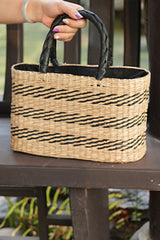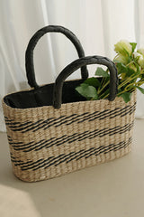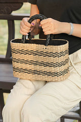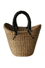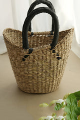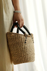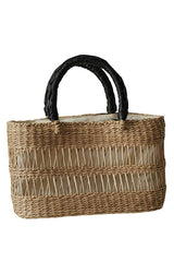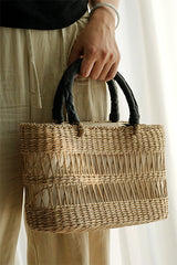 This faux rattan, handwoven bag features trendy woven elements.Wear as a clutch or shoulder bag!