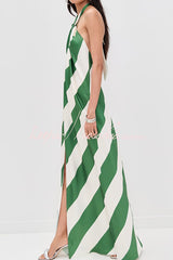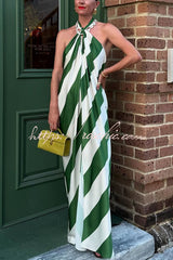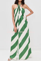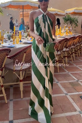 Most Dreamy Stripe Print Halter Tie-up Backless Pocket Loose Maxi Dress