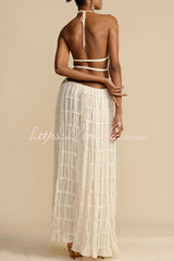 Versatility and Vintage Charm Pleated Drawstring Waist Tiered Maxi Skirt