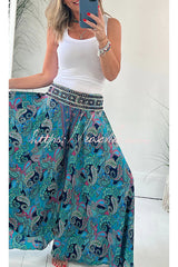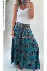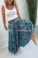 Ethnic Paisley Print Elastic Patchwork Waist Pocketed Lightweight Pants