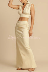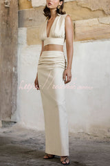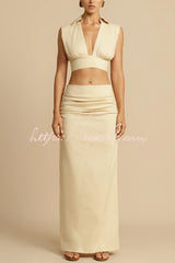 - A trans-seasonal skirt designed for versatility. Crafted from luxurious cotton twill, it's stylish and effortless. Hand-stitched pleats at the hips perfectly accentuate a woman's curves. Designed to be mid-rise, you can size up for a more relaxed fit. The classic mid-back slit design allows you to move freely and shows your exquisite temperament. Pair it with our crop top for a timeless ensemble.