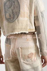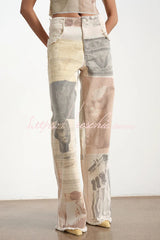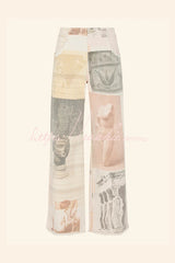 - Wide-leg high-rise jeans in organic cotton with raw edge detailing. Printed with original artwork by Grover Rad, depicting the historical figure of the ancient poet of desire, Sappho of Lesbos.Our distinctive clothing will add instant style to your wardrobe.