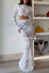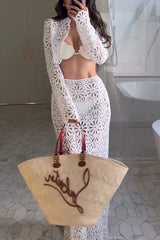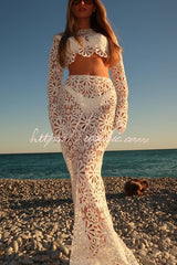 Balmy Summers Crochet Lace Floral Pattern Elastic Waist Fishtail Vacation Maxi Skirt