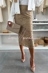Lesia Floral Lace High Rise Slit Stretch Midi Skirt