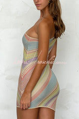 Hot Summer Girls Knit Striped Metal Beaded One Shoulder Stretch Mini Dress