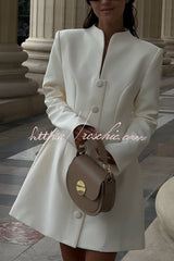Solid Color Long-sleeved Slim-fit Button-down Casual Mini Dress