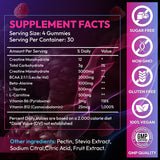 Creatine Gummies Monohydrate Complex 9000MG, Pre-Workout for Men & Women, Creatine Gummy with L-Taurine, BCAA 2:1, B12/6 for Muscle Support, Enhance Strength, Energy Boost-120 Count