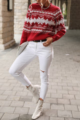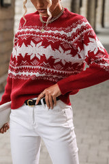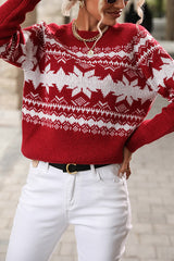 Christmas Snowflake Round Neck Long Sleeve Loose Knitted Sweater
