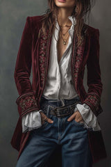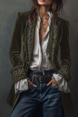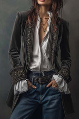 Gold Velvet Patchwork Printed Edge Long-sleeved Casual Jacket