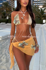 Gradient Floral Embellishment Tie-up Two-piece Stretch Bikini Swimsuit and Holiday Sheer Mini Skirt Set