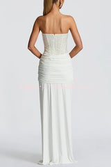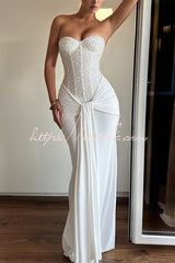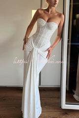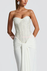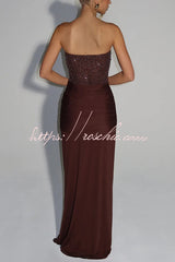 • The Carina Maxi Dress in Plum Brown combines an embellished mesh bodice with padded, underwired cups and a strapless neckline. Its contrast slinky jersey skirt and gathered panels tied at the front create a sleek, sophisticated look.Our distinctive clothing will add instant style to your wardrobe .