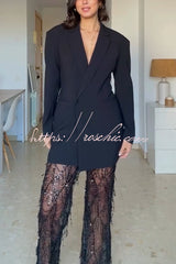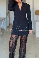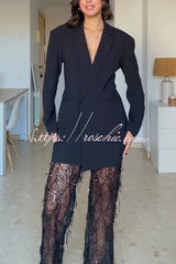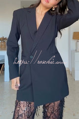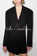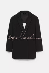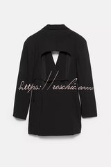 Yulissa Single Button Long Sleeve Fitted Waist Open Back Pocketed Lapel Blazer