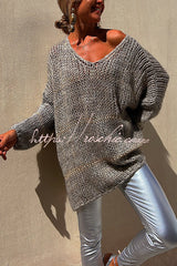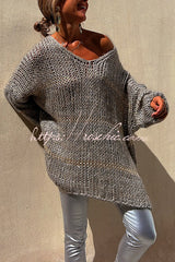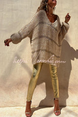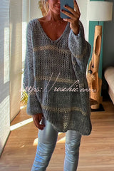 Autumn Brunch Knit Striped Colorblock Loose Pullover Sweater