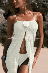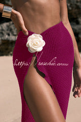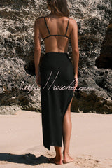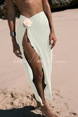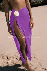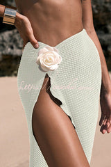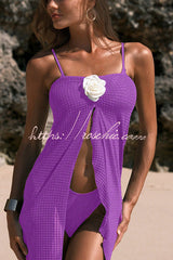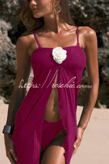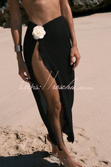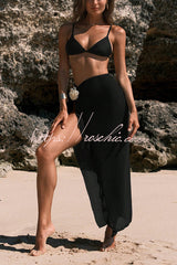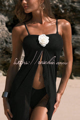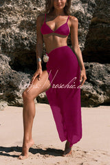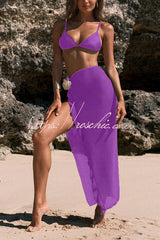 Solid Strappy Stretch Two-piece Bikini Swimsuit and Floral Embellished Maxi Cover-up Skirt Set