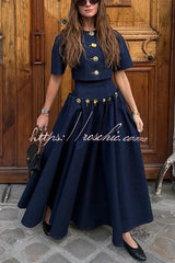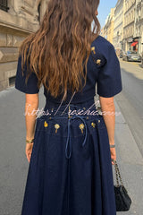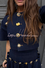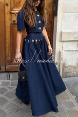 Custom Look Denim Unique Metal Pattern Buttons Slit Half Sleeve Crop Jacket
