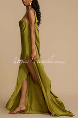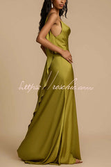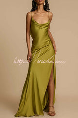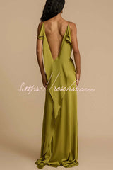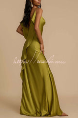 Evening Date Satin Cowl Neck Drape Ruffle Backless Bias Cut Party Maxi Dress