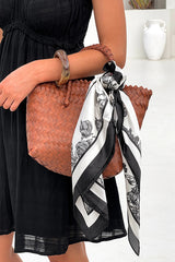 This faux rattan, handwoven bag features trendy woven elements.Wear as a clutch or shoulder bag!