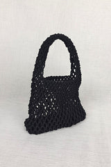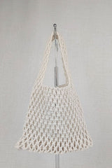 This fishnet woven tote features an on-trend woven element.Can be worn as a clutch!