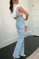 Kathlyn Lace Layered Tulle High Neck Ruffle Cropped Top
