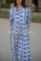 Botanical Print Loose-fitting Tie Casual Vacation Maxi Dress