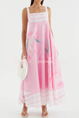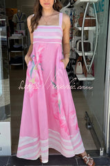 Floral Print Sleeveless Square Neck Casual Pocket Holiday Maxi Dress
