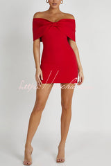 Love is a gift Off Shoulder Bow Mini Dress