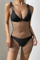 Sexy Rhinestone Woven Fishnet Cover-up Mini Dress