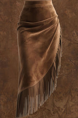 Fashionable Suede Tassel Irregular Casual Midi Skirt