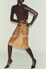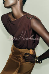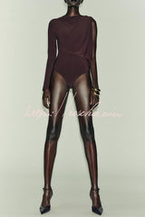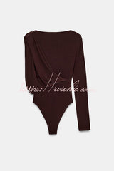 After Party Energy Brooch Detail One Sleeve Ruched Drape Stretch Bodysuit