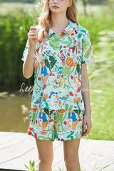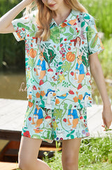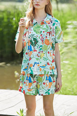Green Carrot and Bunny Print Home Shorts Two-piece Set