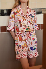 Size(inch) Bust Waist Hips Shoulder Sleeve Length Top length Bottom length S 40.94 25.98 40.94 14.96 11.22 25.2 15.16 M 42.52 27.56 42.52 15.35 11.42 25.98 15.55 L 44.09 29.13 44.09 15.75 11.61 26.77 15.94