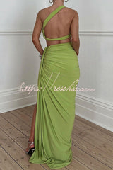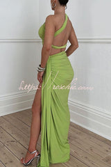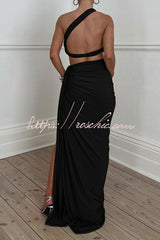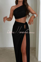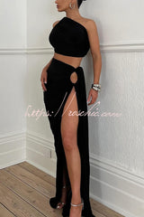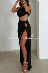 Sexy Backless Bandeau Top and Slim Slit Skirt Set