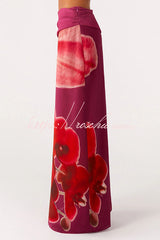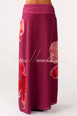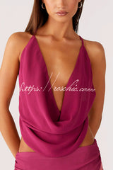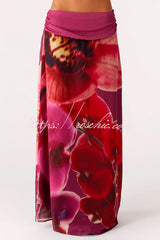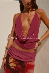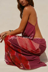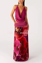 Sexy Deep V Backless Draped Camisole Top and Floral Print Chiffon Maxi Skirt Set