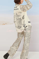 Take Me To The Ocean Satin Unique Print Long Sleeve Shirt and Elastic Waist Pocketed Pants Set