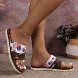 Independence Day Heart Shaped Flag Print Retro Strappy Rivet Beach Slippers