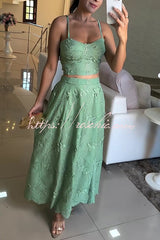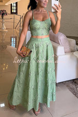 Carah Floral Embroidery Back Smocked Tank and Elastic Waist A-line Maxi Skirt Set