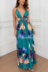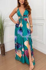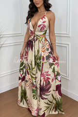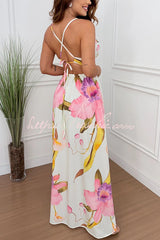 Seinah Floral Print Cutout Waist Open Back Lace-up Slit Maxi Dress