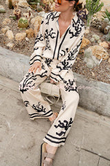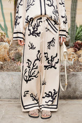 Light and Comfortable Satin Unique Print Elastic Waist Pocketed Wide Leg Pants