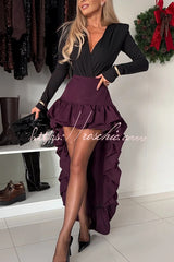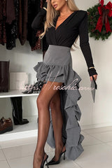 Toast To Midnight Solid Color High Rise Irregular Ruffled High Low Maxi Skirt