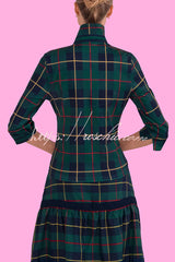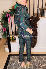 Embrace The Festival Plaid Twist Half Sleeve Shirt and Elastic Waist Pencil Pants Set