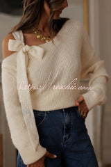 Solid Color Bow Tie Long-sleeved Casual Knit Sweater