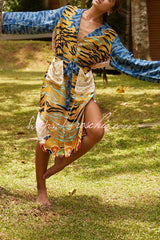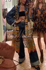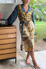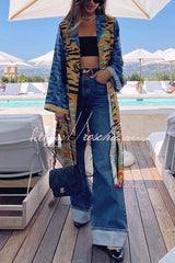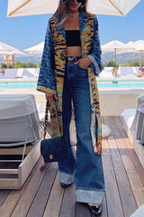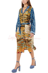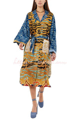 Tropical Jungle Tiger Unique Print Long Sleeve Belt Pocketed Kimono Coat