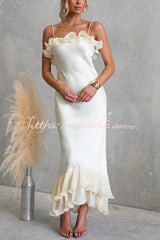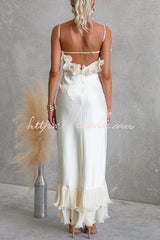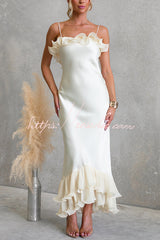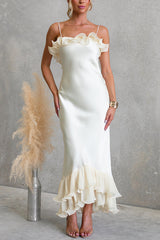Bella Satin Pleated Chiffon Ruffle Details Slip Maxi Dress